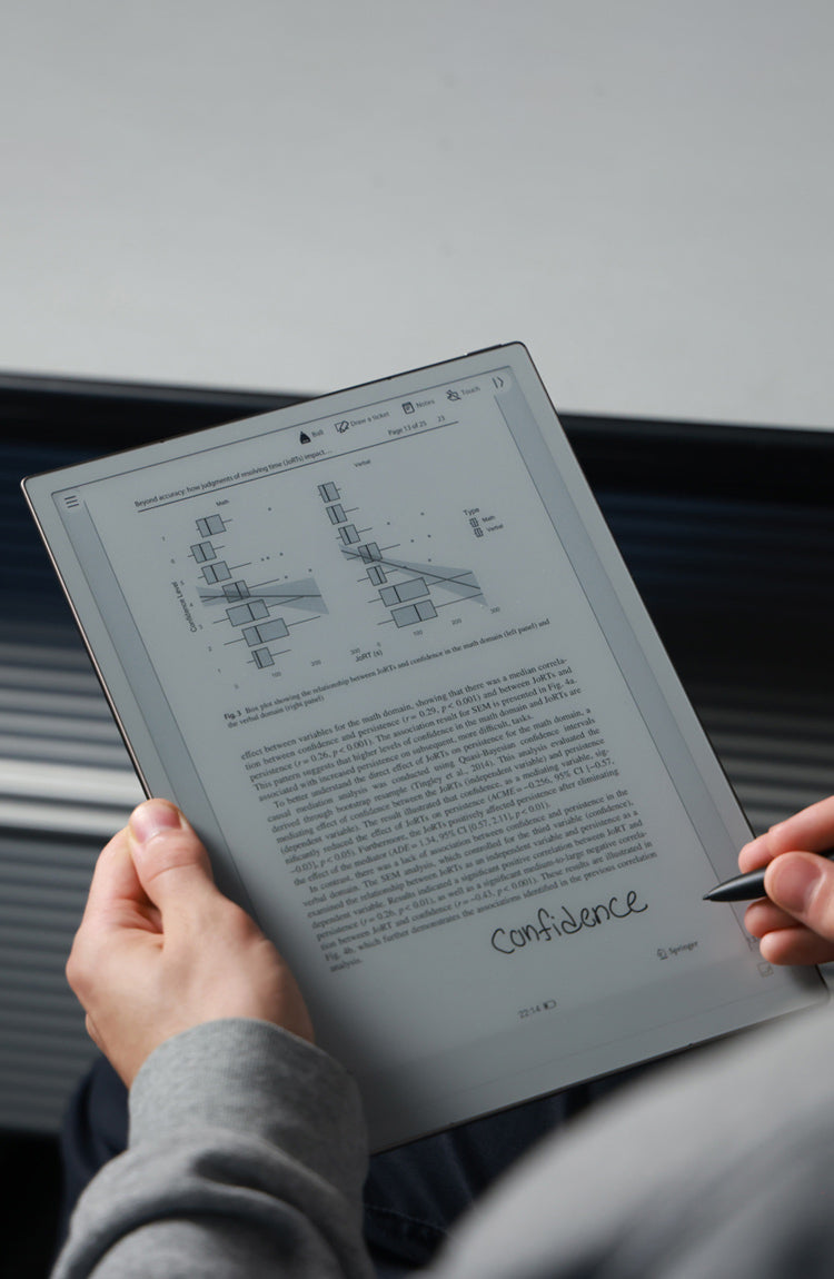 Pappersliknande känsla, mindre ögonansträngning – 10,65-tums högupplöst e-bläck (1920×2560, 300 PPI) för att läsa, skissa och markera PDF-filer.