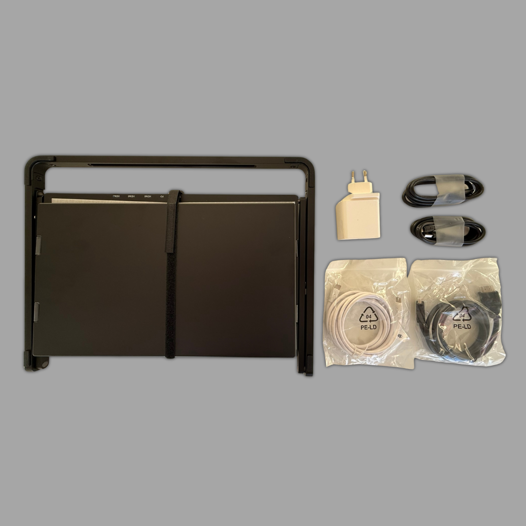 Den ultimata trippelskärmsförlängaren för din bärbara dator: Få tre FHD-skärmar (15,6 tum) i en hopfällbar, lätt lösning som ansluts direkt till din bärbara dator via USB-C/HDMI. Perfekt för resor, studier, kalkylblad, kodning och multitasking – och bevisat ökad produktivitet genom att ge dig mer arbetsyta utan att ständigt byta fönster.